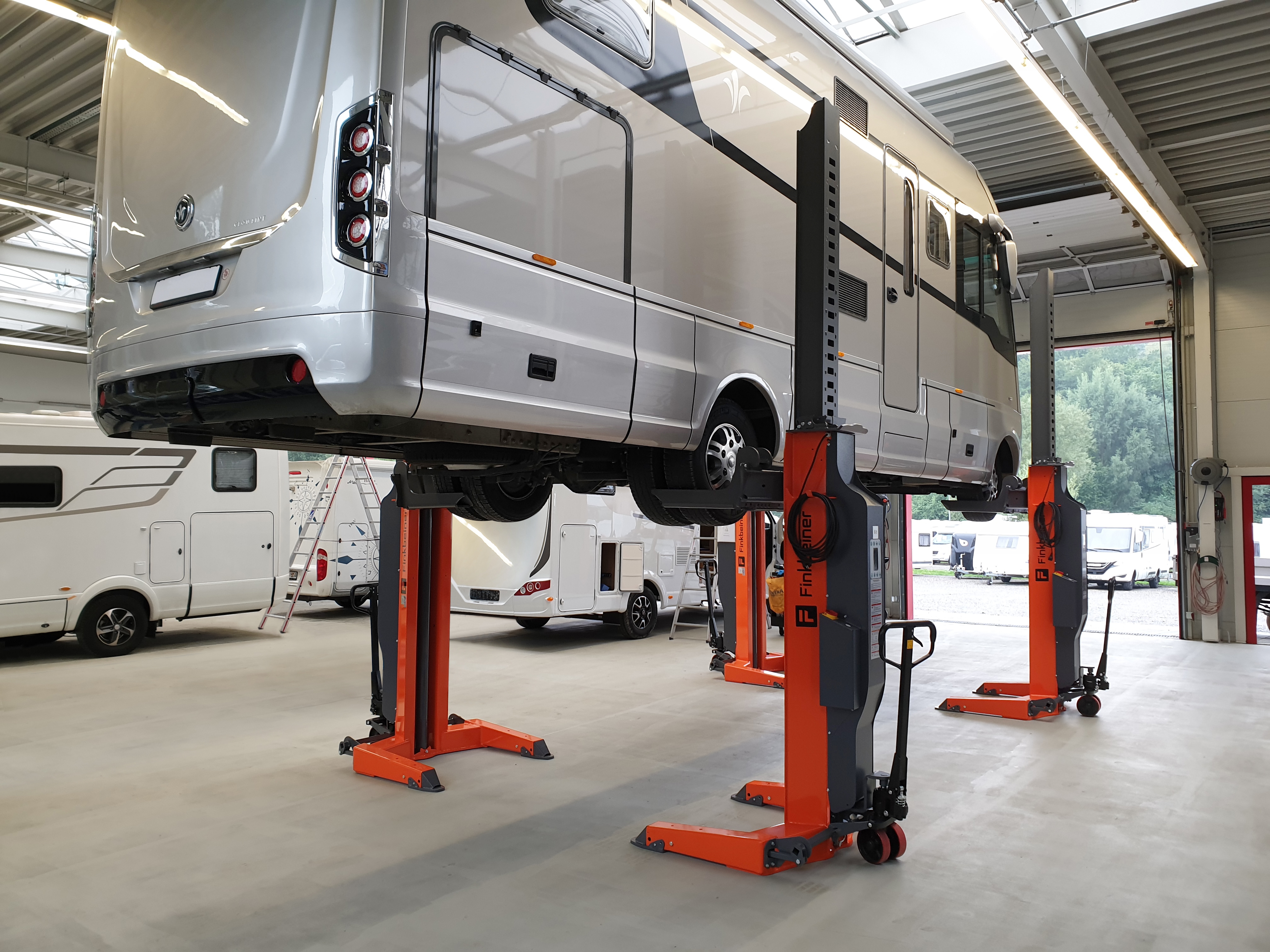 Las reparaciones o los trabajos de mantenimiento en autocaravanas o caravanas pueden realizarse de forma profesional y rápida gracias a nuestras pinzas móviles para ruedas. Las horquillas para ruedas, especialmente largas, facilitan o incluso permiten coger con seguridad las ruedas, que se encuentran muy hacia dentro. Esto permite una asistencia rápida en caso de problemas técnicos en vehículos de caravaning. Los sistemas de elevación de ruedas también son ideales para vehículos con carrocería ancha y eje estrecho.
